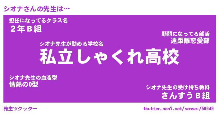 | ヒーロー風カッコイイあだ名 | 『スーパーシオナ』『ウルトラシオナマン』 |