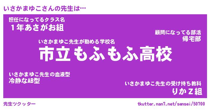 | 女子向けラノベタイトル風あだ名 | 『(仮)いさかまゆこのやんごとなき事情』 |