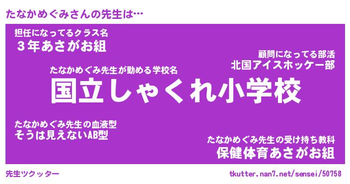 | 伝説のあだ名 | 『伝説のスナイパーたなかめぐみ』 |