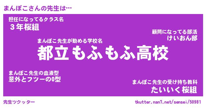 | 意味不明あだ名 | 『ペロリンまんぽこ』『永久保存まんぽこ』 |