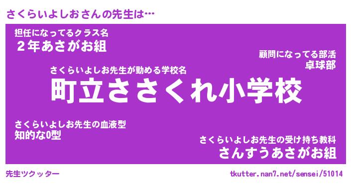 | 恥ずかしいあだ名 | 『プリティーさくらいよしお』『さくちん』 |