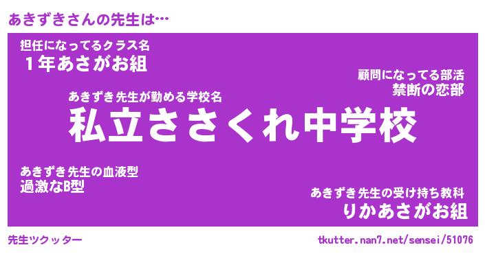 | 意味不明あだ名 | 『ペロリンあきずき』『永久保存あきずき』 |