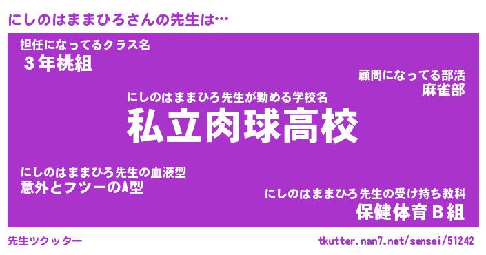 | 男性向けラノベタイトル風あだ名 | 『にしのはままひろの憂鬱』 |