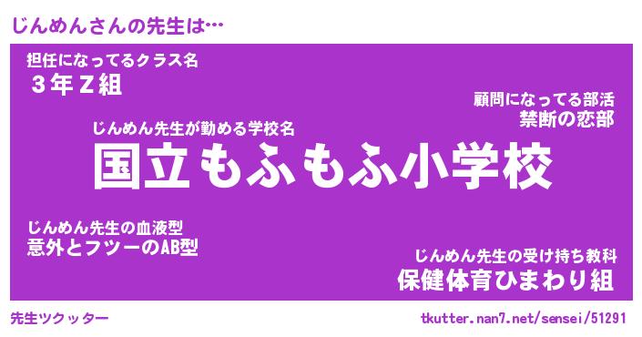| 意味不明あだ名 | 『ペロリンじんめん』『永久保存じんめん』 |