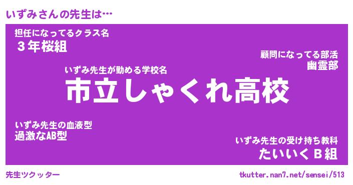| ヘコむあだ名 | 『いずっふぃ~』『酢こんぶ』 |