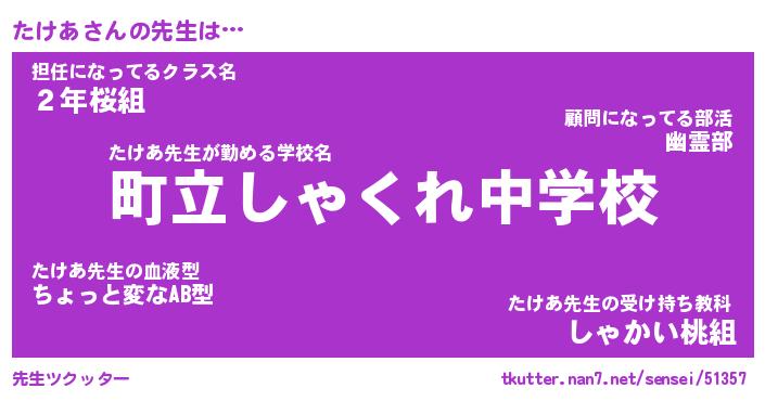 | 意味不明あだ名 | 『ペロリンたけあ』『たけあフォーエバー』 |
