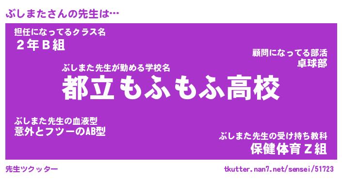 | 意味不明あだ名 | 『ペロリンぶしまた』『永久保存ぶしまた』 |