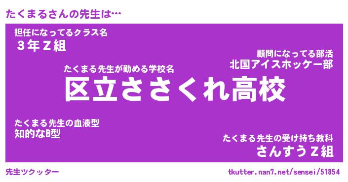 | 意味不明あだ名 | 『ペロリンたくまる』『永久保存たくまる』 |