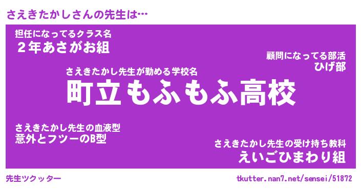 | ヒーロー風カッコイイあだ名 | 『スーパーサエキタカシ』『黄金騎士サエ』 |