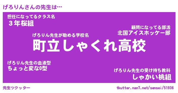 | 意味不明あだ名 | 『ペロリンげろりん』『永久保存げろりん』 |