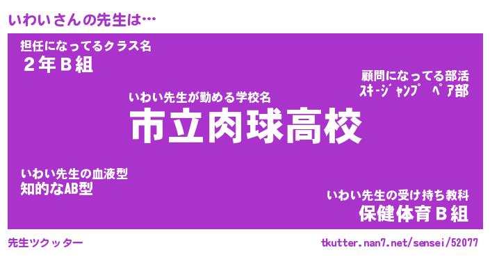 | ヘコむあだ名 | 『いわふぇ~』『牛乳』『いわっちょ』 |