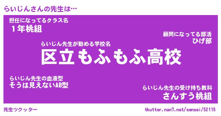 | 意味不明あだ名 | 『ペロリンらいじん』『永久保存らいじん』 |