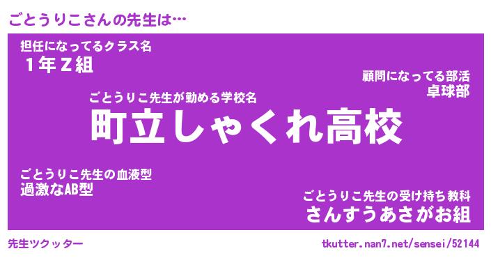 | ファンタジー風あだ名 | 『ゴトフェル』『エターナルゴトウリコー』 |