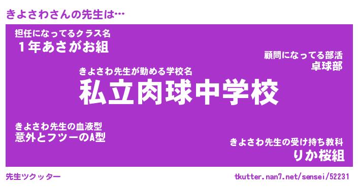| 意味不明あだ名 | 『ペロリンきよさわ』『永久保存きよさわ』 |