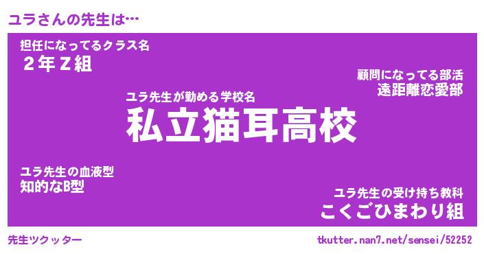 | ヘコむあだ名 | 『ユラにー』『なまこ酢』『ユラ太郎』 |