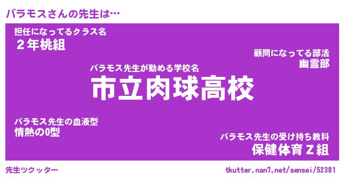 | ファンタジー風あだ名 | 『バラフェル』『エターナルバラモスー』 |