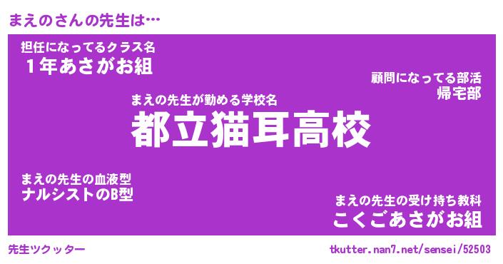 | ヘコむあだ名 | 『まえにー』『つくし』『まえを』 |
