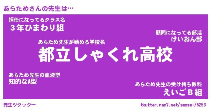 | ヒーロー風カッコイイあだ名 | 『スーパーアラタメ』『暗黒騎士アラ』 |