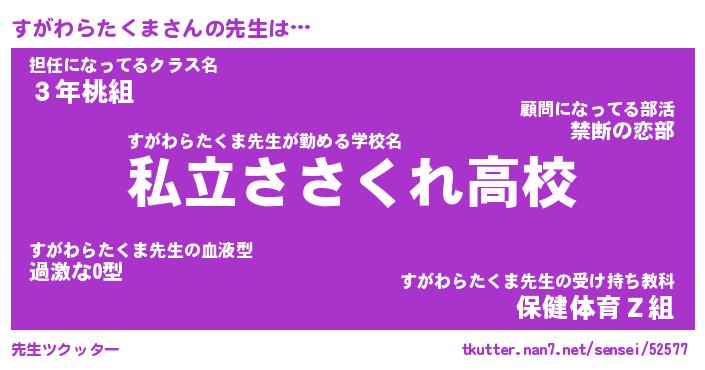 | ヒーロー風カッコイイあだ名 | 『スーパースガワラタクマ』 |