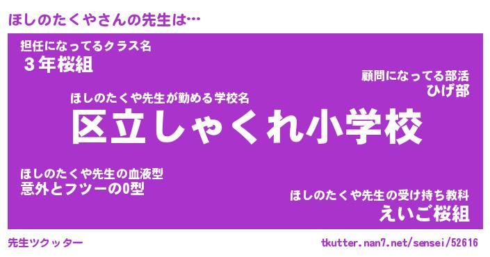 | 伝説のあだ名 | 『封印されしスナイパーほしのたくや』 |