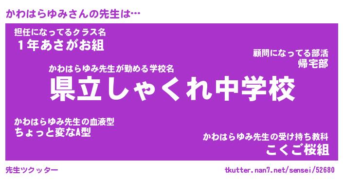 | 女子向けラノベタイトル風あだ名 | 『かわはらゆみ姫と円卓の騎士』 |