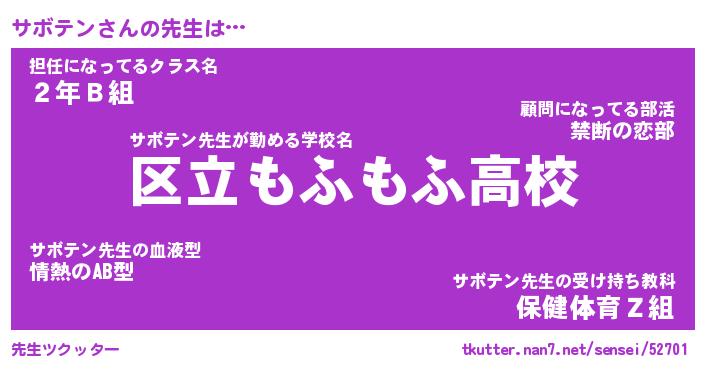 | ヘコむあだ名 | 『サボにゅー』『なまこ酢』 |