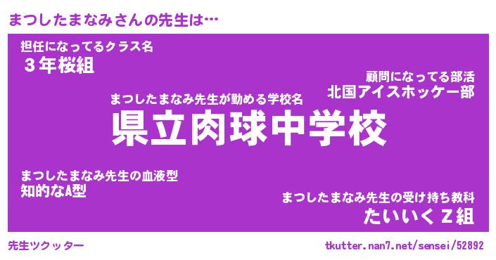 | 胡散臭い通販商品みたいなあだ名 | 『モテモテ間違いなし水晶球…その名も「まつしたまなみ」』 |