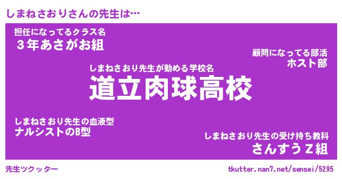 | ヘコむあだ名 | 『しまふぇ~』『酢こんぶ』 |