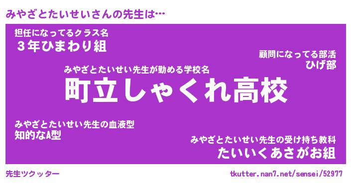 | 肩書あだ名 | 『みやざとたいせい御曹司』 |