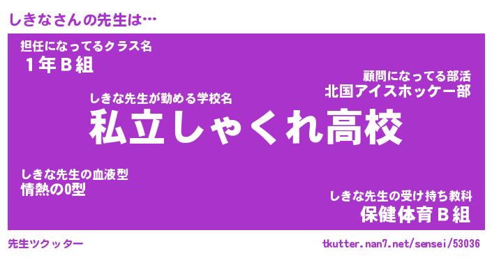 | ヒーロー風カッコイイあだ名 | 『スーパーシキナ』『ウルトラしきなマン』 |