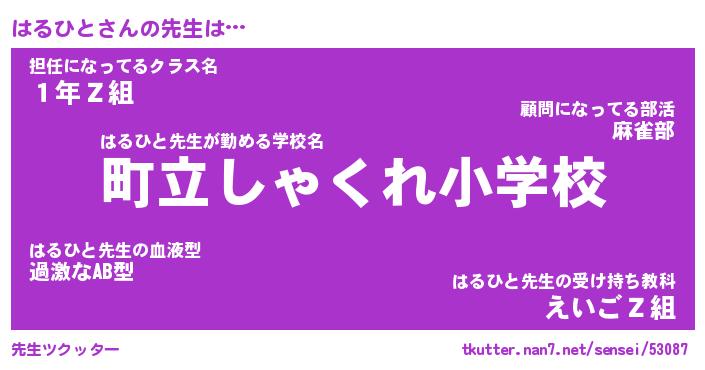 | ファンタジー風あだ名 | 『ハルフェル』『エターナルハルヒトー』 |