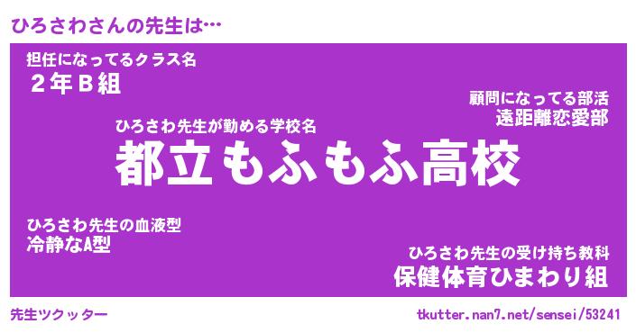 | ヒーロー風カッコイイあだ名 | 『スーパーヒロサワ』『天弓騎士ヒロ』 |