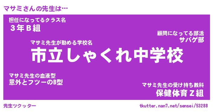 | 意味不明あだ名 | 『ペロリンマサミ』『マサミフォーエバー』 |