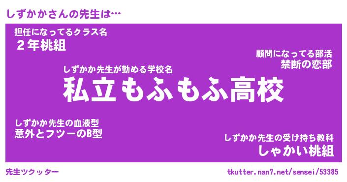 | ファンタジー風あだ名 | 『シズフェル』『エターナルシズカカー』 |