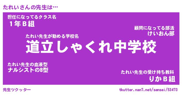 | ヒーロー風カッコイイあだ名 | 『スーパータレイ』『ウルトラたれいマン』 |
