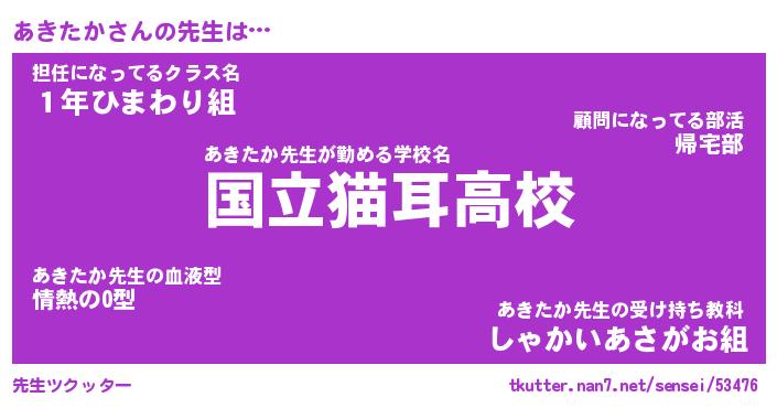 | 意味不明あだ名 | 『ペロリンあきたか』『永久保存あきたか』 |