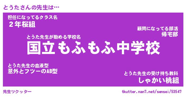 | 意味不明あだ名 | 『ペロリンとうた』『とうたフォーエバー』 |