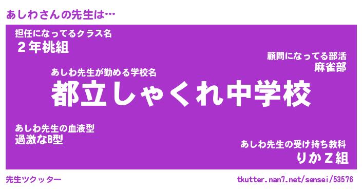 | 意味不明あだ名 | 『ペロリンあしわ』『あしわフォーエバー』 |