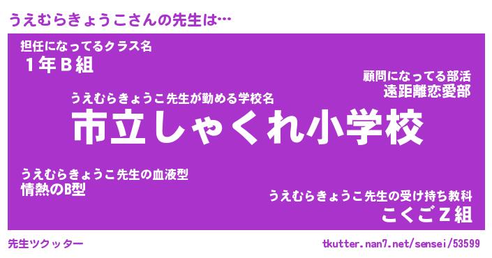 | 肩書あだ名 | 『うえむらきょうこ御曹司』 |