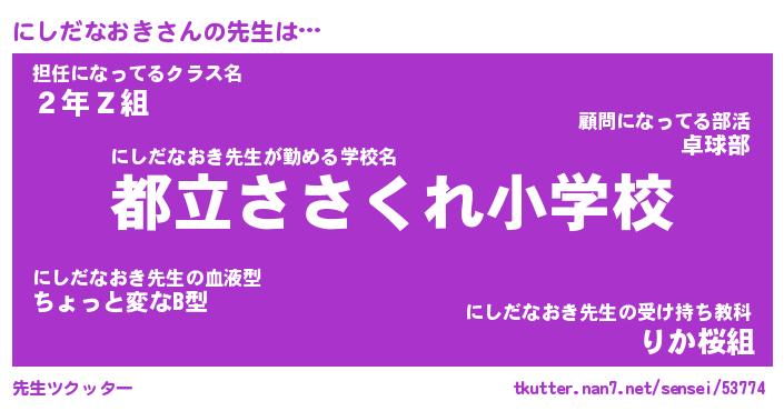 | ポケモン風あだ名 | 『ニシチュウ』『ニシダダネ』 |