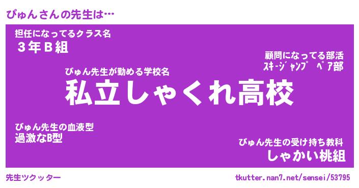 | 伝説のあだ名 | 『伝説のスナイパーぴゅん』 |