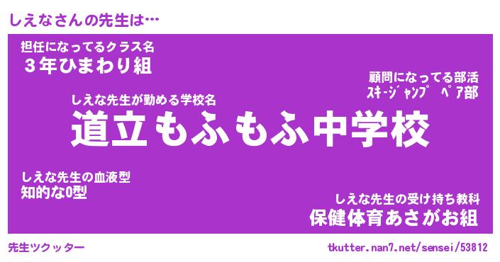 | ヘコむあだ名 | 『しえにゅー』『酢こんぶ』 |