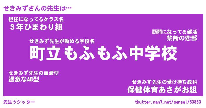 | 意味不明あだ名 | 『ペロリンせきみず』『永久保存せきみず』 |
