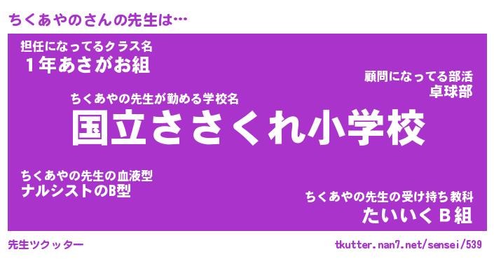 | ヒーロー風カッコイイあだ名 | 『スーパーチクアヤノ』『黄金騎士チク』 |