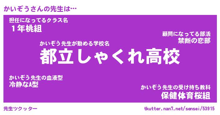 | ファンタジー風あだ名 | 『カイフェル』『エターナルカイゾウー』 |