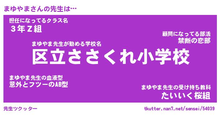 | ヘコむあだ名 | 『まゆもー』『酢こんぶ』『まゆ太郎』 |