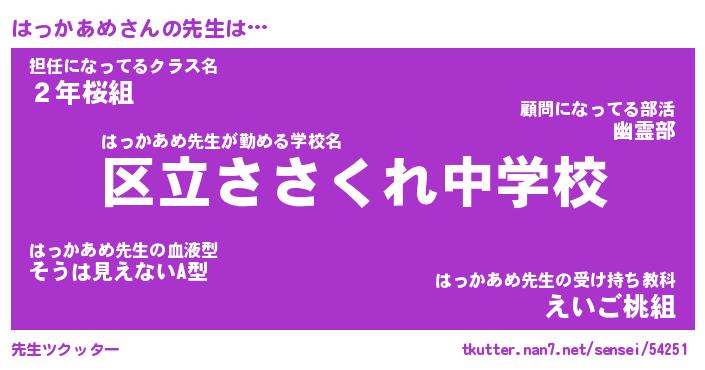 | ヒーロー風カッコイイあだ名 | 『スーパーハッカアメ』『銀牙騎士ハッ』 |