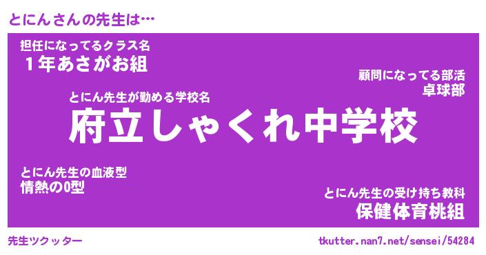 | 意味不明あだ名 | 『ペロリンとにん』『とにんフォーエバー』 |