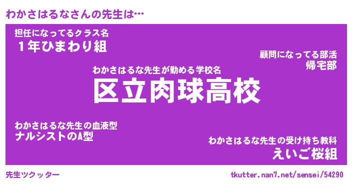 | ヒーロー風カッコイイあだ名 | 『スーパーワカサハルナ』『銀牙騎士ワカ』 |