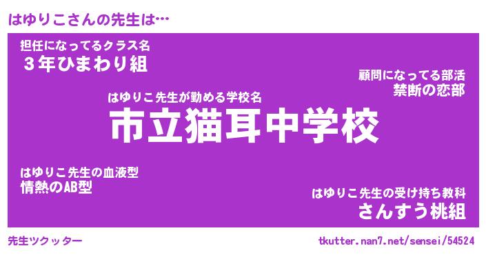 | 意味不明あだ名 | 『ペロリンはゆりこ』『永久保存はゆりこ』 |